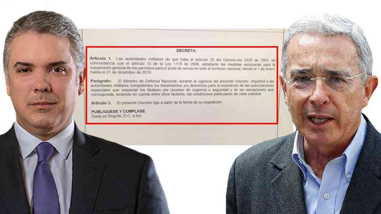 Este martes el senador Álvaro Uribe sorprendió al publicar el borrador en Word del decreto que prorroga la prohibición del porte de armas en Colombia. Llamó la atención que fuera el expresidente y no el propio Iván Duque quien se encargara de anunciarle al país cómo iba a quedar el documento. En entrevista con la W Radio, Guillermo Botero, ministro de Defensa, no supo contestar por qué Uribe había accedido al borrador del decreto, ese que trae un parágrafo que abre la posibilidad a una nueva reglamentación para que se expidan salvoconductos para casos especiales. En el trino de Uribe se alcanza a ver que el pantallazo del decreto fue tomado el 24 de diciembre de 2018, a las 11:59 a.m., es decir, más de 40 horas antes de que el presidente Duque, quien firmó el decreto, se lo contara a los colombianos.