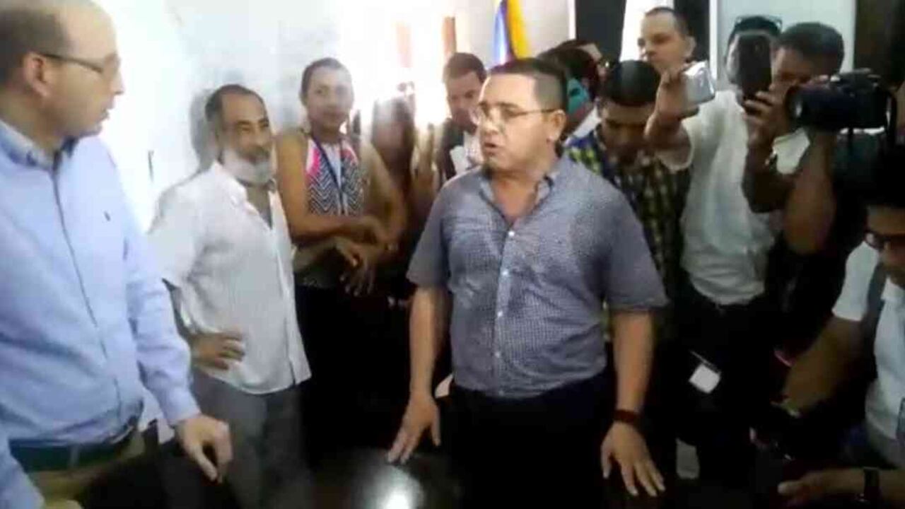 Una verdadera novela se vivió este martes en la Alcaldía de Santa Marta cuando su titular, Rafael Martínez, se presentó en el despacho municipal para hacer el empalme con el secretario de Transparencia Andrés Rugeles, quien había sido designado como mandatario encargado. Como se recordará, un juez de segunda instancia levantó este lunes la medida de aseguramiento que mantuvo a Martínez detenido en su casa durante cuatro meses y que le significó la suspensión del cargo; sin embargo, el nuevo fallo le despejó el camino para su regreso sin cortapisas. No obstante, hacia las 10:30 a.m. de este martes se dio el tenso encuentro entre el alcalde titular y el encargado, momento que se alargó porque Rugeles, según declaró Martínez, exigía que el juzgado notificara la decisión al Ministerio del Interior, que no era parte del proceso. Tuvieron que mediar el procurador Fernando Carrillo y el senador Antonio Sanguino para que se firmaran las respectivas actas para, finalmente, se transfiriera el poder.