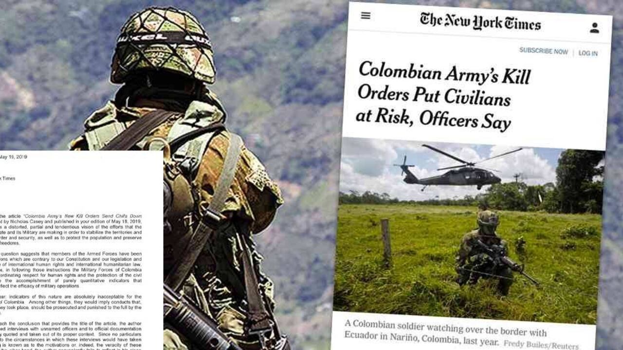 Esta semana el gobierno le envió una carta a The New York Times. En el documento, este califica el artículo periodístico del diario como “parcial, tendencioso y distorsionado”. Agrega que indicadores de la naturaleza de subir las bajas son “inaceptables para el gobierno de Colombia”.