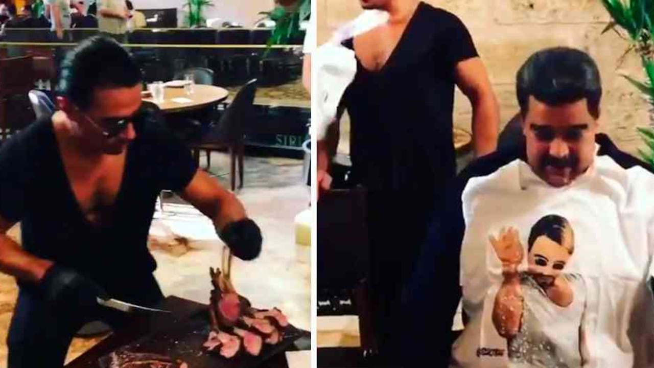El chef Nusret Gökçe, apodado como Salt Bae, los atendió personalmente y les hizo un show especial, incluso les regaló una camisa. Nus-ret es una cadena de restaurantes turcos. Las imágenes han causado indignación al comparar la mesa del mandatario con la escasez de comida que sufren los venezolanos. Esto se da en un contexto bastante complejo, que ha llevado a cientos de venezolanos a huir diariamente de su país por la falta de comida.