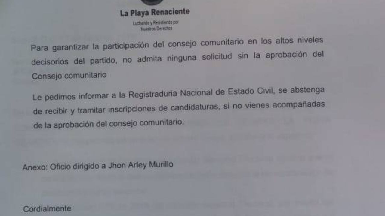 El partido Colombia Renaciente se consolidó cuando el representante a la Cámara John Arley Murillo logró el escaño para la población afro. Murillo fue apoyado por el Consejo Comunitario Playa Renaciente, quien lo avaló y respaldó. Alrededor de esa personería se estaban aglutinando varias figuras de centro y defensores del acuerdo de paz. Sin embargo, en días pasados, el Consejo Comunitario se mostró en desacuerdo con los avales que estaría ofreciendo Murillo en algunas regiones del país, a personas afines al uribismo y a otras con posiciones diferentes a las del Consejo Comunitario, el cual ha insistido en que una de sus causas debe ser la defensa de la integridad de lo acordado con las Farc. El Consejo Comunitario reaccionó respondiendo que esta instancia es la que tiene autoridad sobre los avales. El Consejo Nacional Electoral deberá decidir ahora quién es el dueño de la personería: si el Consejo o el representante. Al rededor del proyecto de Colombia Renaciente se han reunido figuras como Roy Barreras, Clara López y Lucho Garzón.