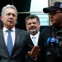 Los simpatizantes del expresidente Álvaro Uribe participaron en una concentración ciudadana a las afueras del Complejo Judicial de Paloquemao para acompañar al exmandatario a rendir su testimonio en una diligencia presencial en medio del proceso que se lleva a cabo en su contra.