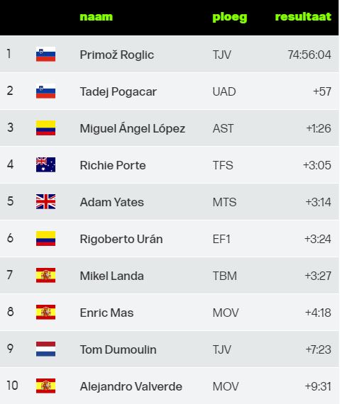 En la meta, López, de 26 años, aventajó a Roglic en 15 segundos y en 30 al también esloveno Tadej Pogacar, segundo en la clasificación general, en la que ‘Supermán’ se coloca ahora tercero.