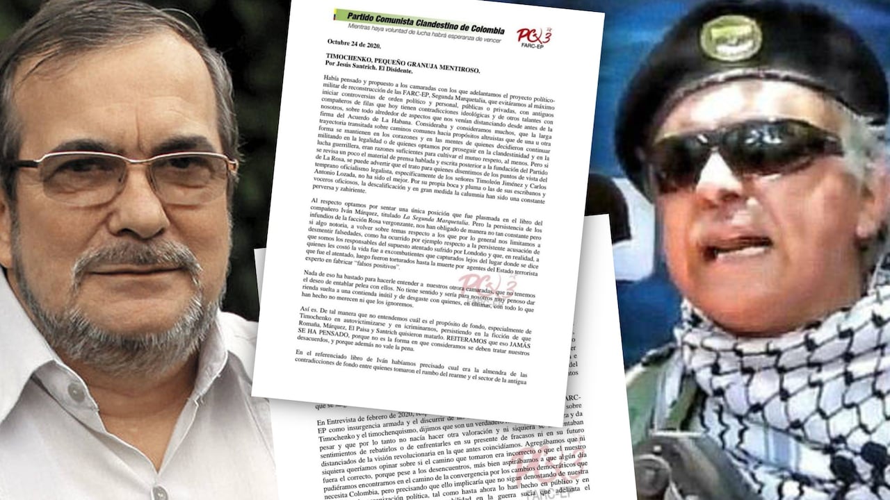 Timochenko y Santrich definitivamente no se quieren. En la última carta del guerrillero prófugo de la justicia, este se refiere a Timochenko en los siguientes términos: “Granuja, torpe, mentiroso, cobarde, canalla, lacayo, traidor, derechista, amanuense de la oligarquía y único responsable de la crisis del partido Farc”. La indignación que dio pie a semejante andanada provendría de lo que Santrich considera las mentiras de Timochenko. Este le echó la culpa del asesinato de Álvaro Gómez a Tirofijo y al Mono Jojoy. Santrich reconoce que las Farc sí lo mataron, pero que todas las decisiones fueron colectivas del secretariado y que es cobarde adjudicarles responsabilidades individuales a los que están muertos.