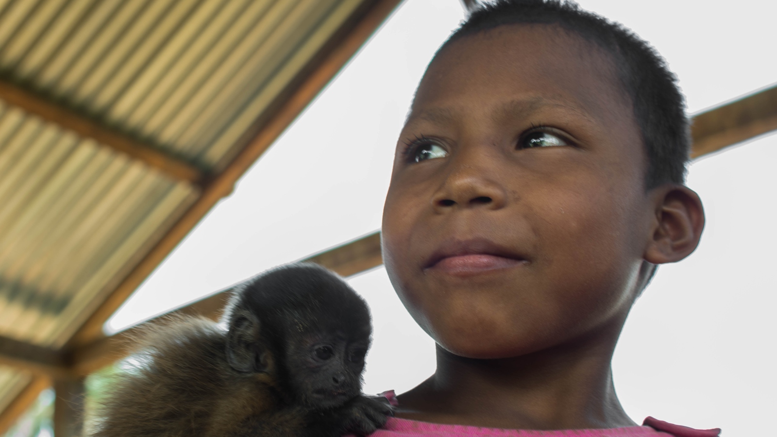 Muchos nukak recorren las calles de San José del Guaviare con un mono mascota con el cual recolectan algo de dinero entre los turistas © Martina Jiménez G.