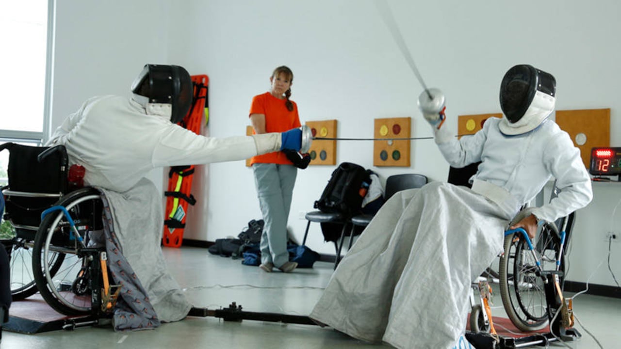 El programa de actividad física es una de sus iniciativas más destacadas y se ha consolidado como un semillero de formación de deportistas. Muchos de ellos compiten en torneos locales o representan al país en el exterior. Aquí se forjó la pionera de la esgrima paralímpica en Colombia, campeona nacional en pistola de aire y subcampeona de rifle, Rosa María Sánchez, suboficial retirada de la Policía Nacional. Dos impactos de bala que alcanzaron su médula ósea la dejaron cuadrapléjica en 1994. “Desde hace 13 años me dedico al deporte de alto rendimiento. Durante diez practiqué tiro paralímpico y hace tres empecé con esgrima. Esta ha sido la mejor opción para recuperarme mental y físicamente, porque la mente se distrae y no tiene tiempo de deprimirse o echarse a la pena. Este mes de julio representaré al país en Polonia en esta disciplina”, dice Rosa.