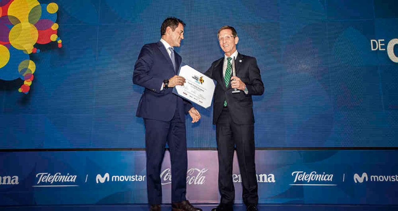 Emilio Archila recibió el reconocimiento de manos de Fabián Hernández, presidente de Telefónica.