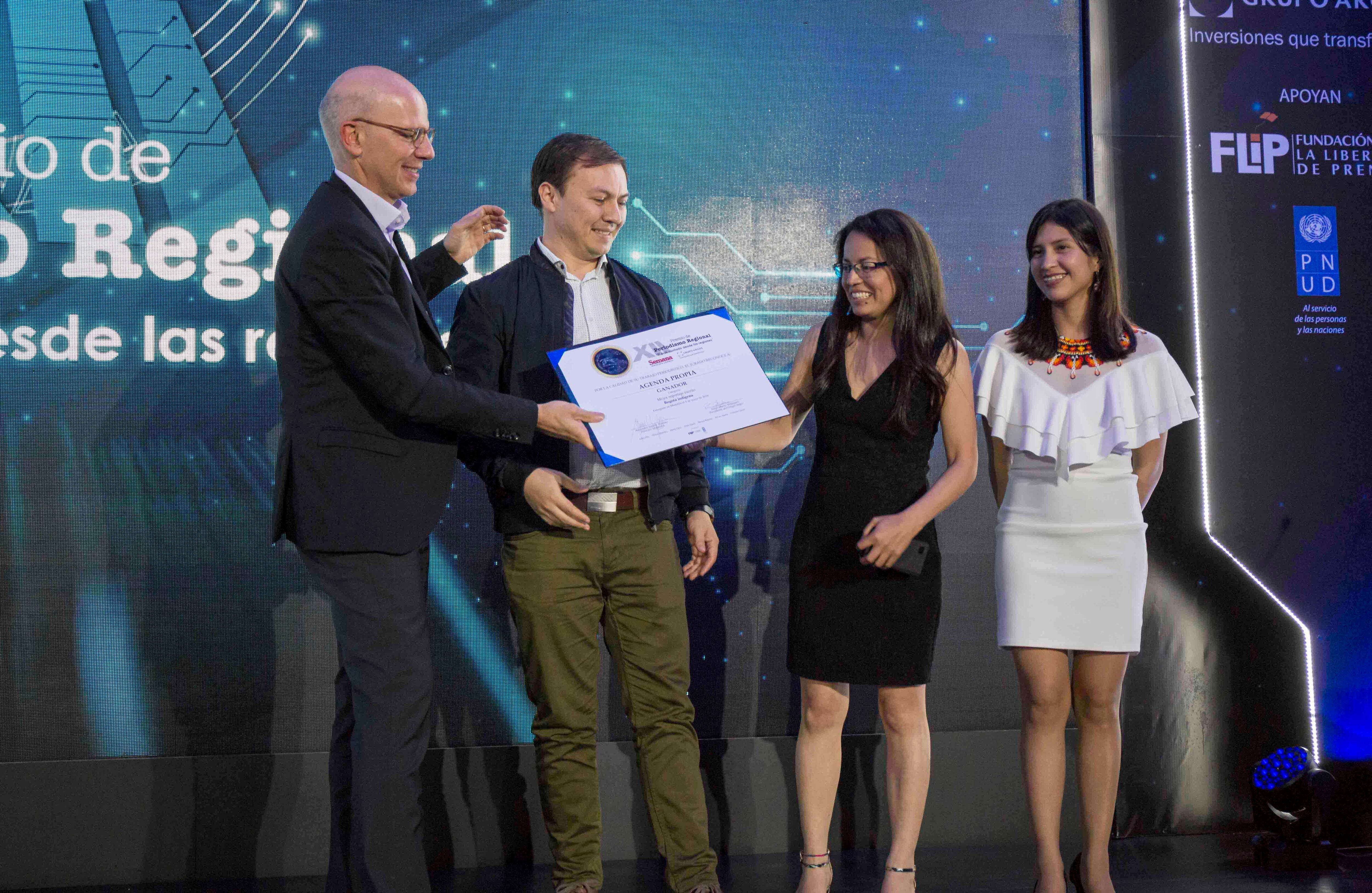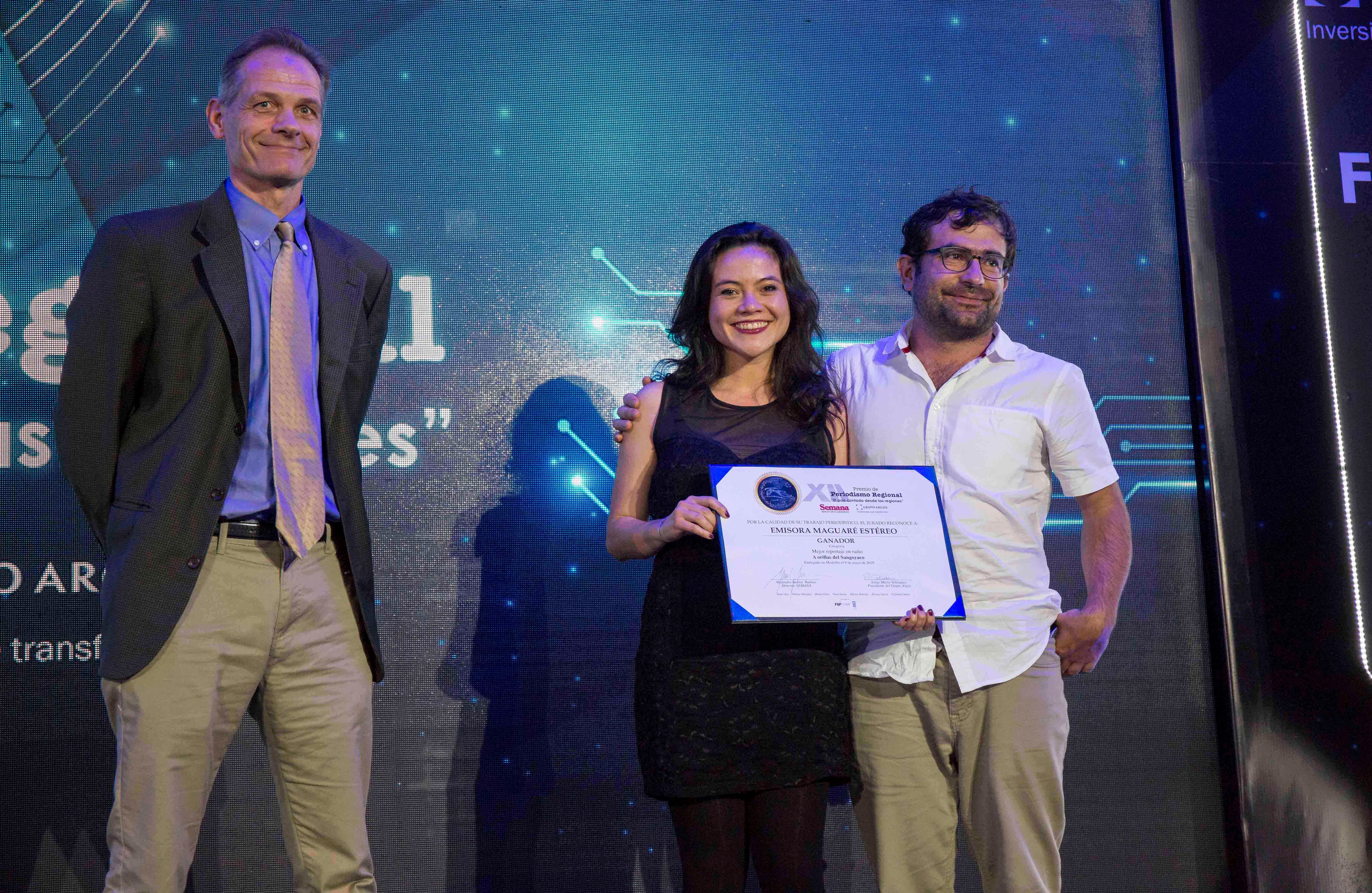 El premio al Mejor medio comunitario “Amparo Díaz” fue entregado a Carlos Alberto Pérez y el equipo que conforma la emisora Comunitaria Contacto Estéreo en Cajibio (Cauca).