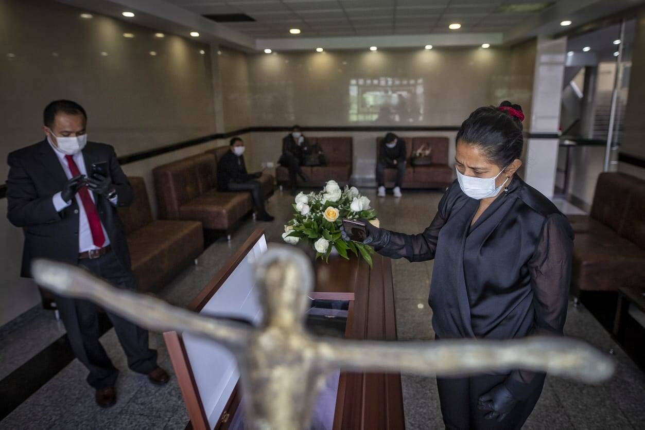 Lo que en otros tiempos hubiese sido mal visto en unas exequias (estar pegado al celular), ahora es la única manera de sobrellevar la pérdida de un ser querido en familia. Reportaje gráfico: Esteban Vega La-Rotta