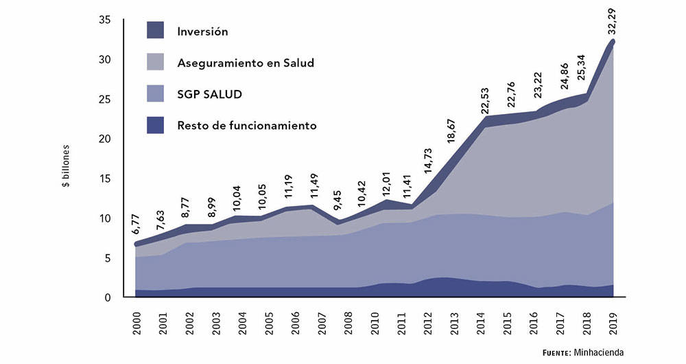Las consecuencias son claras: el presupuesto para salud y protección social prácticamente se triplicó, pues en 2008 era de $10,4 billones y para 2019 estará por encima de $32 billones.