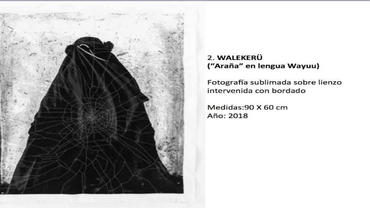 Walekeru (araña en lengua wayuu). Fotografía sublimada sobre lienzo, intervenida con bordado. Foto: Museo Santa Clara.