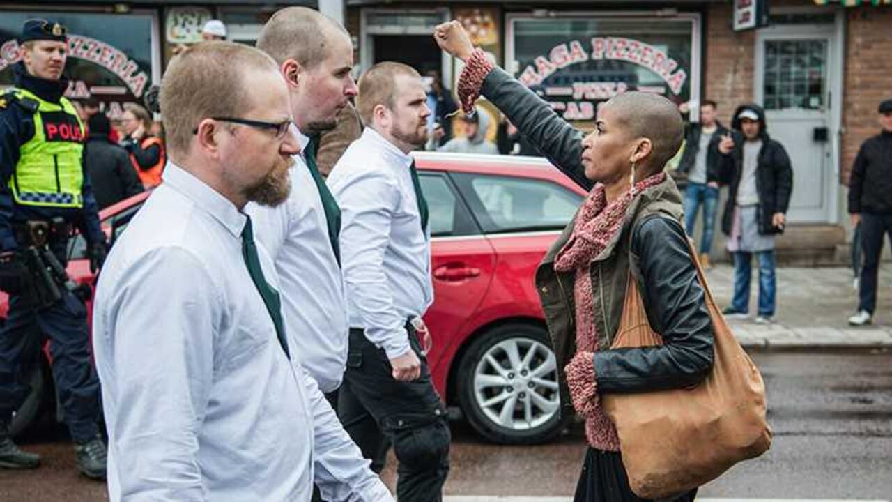 La conmemoración del día del trabajo en Borlange (Suecia) cobró otro significado. La fotografía que ocupó la primera plana de la prensa local no fue la de los manifestantes que reivindicaron el 1 de mayo, sino la imagen de una mujer negra que en solitario se plantó frente una marcha de neonazis.