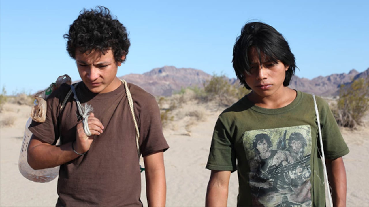 Son dos de los tres protagonistas de esta cinta de carretera (o de carrilera, más bien, porque se mueven por tren) que salen de Guatemala con la esperanza de alcanzar los Estados Unidos —la jaula dorada de la canción—.