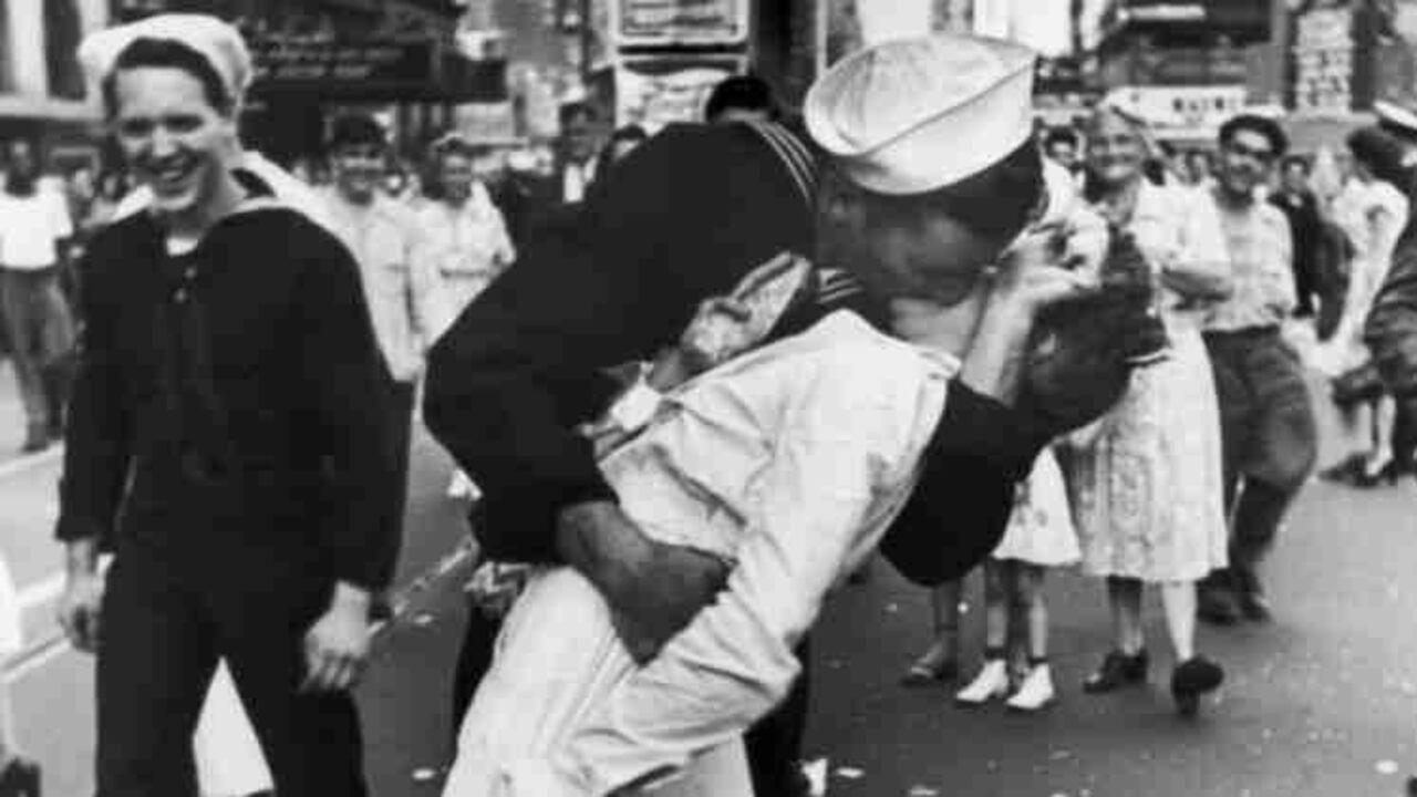 El fotógrafo Alfred Eisenstaedt tomó la imagen de una mujer y un marinero que se besaban el 14 de agosto de 1945, cuando se celebraba el fin de la Segunda Guerra Mundial.