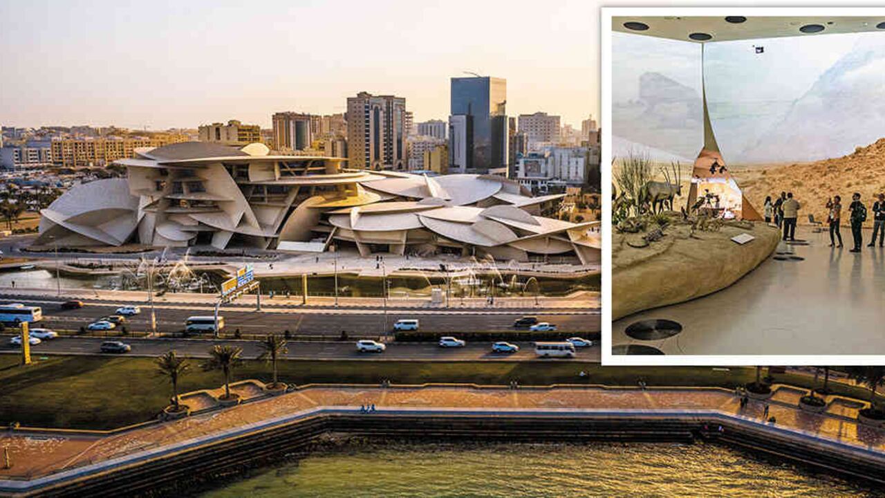 El museo propone un trayecto cronológico de casi dos kilómetros para narrar la historia del país. Comprende tres capítulos. Comienzos empieza con fósiles de más de 400 millones de años y cubre la época previa a que los humanos habitaran la península. Las otras dos, La vida en Catar y Construyendo la Nación constan de 11 galerías que giran en torno al palacio reconstruido y también abordan el futuro inmediato, incluidas referencias al Mundial de Catar 2022. Pero claro, esto último no asombra tanto como la instalación de Jean-Michel Othoniel, que suma 114 fuentes de agua que evocan la caligrafía árabe. Y la escultura Gates of Sea, de la artista siria Simone Fattal, inspirada en los petroglifos y grabados encontrados en Al Jassasiya.