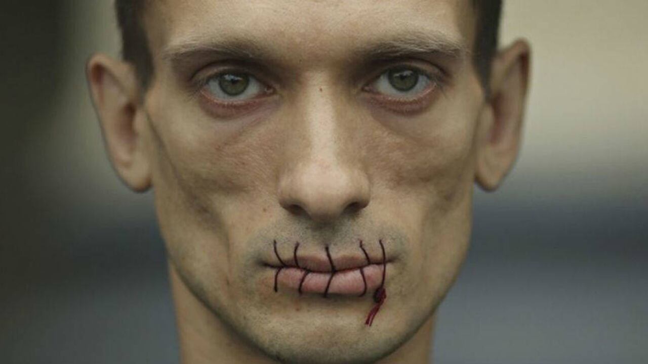 También se cosió la boca para apoyar al grupo femenino punk Pussy Riot, cuyas integrantes fueron encarceladas por cantar contra Putin en el principal templo de la Iglesia Ortodoxa Rusa en Moscú.