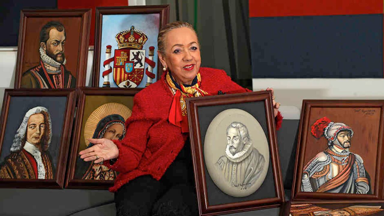 Todas esas historias me entran al alma”, dice María Paulina Espinosa para referirse al significado de los cuarteles que conforman el escudo de España, o a la devoción que tenían los españoles por la Virgen de los Navegantes. También habla de Carlos V, Francisco de Quevedo, Felipe ll y el duque de Lerma. Durante dos años estudió y retrató sus imágenes con la técnica de óleo sobre lienzo y las agrupó bajo el nombre 400 años de Cervantes. Una exposición de 11 cuadros llegará el próximo 13 de abril al Centro de Cooperación Española en Cartagena de Indias, con el fin de contar la vida y las historias de los personajes que habitaron el contexto del escritor español.
