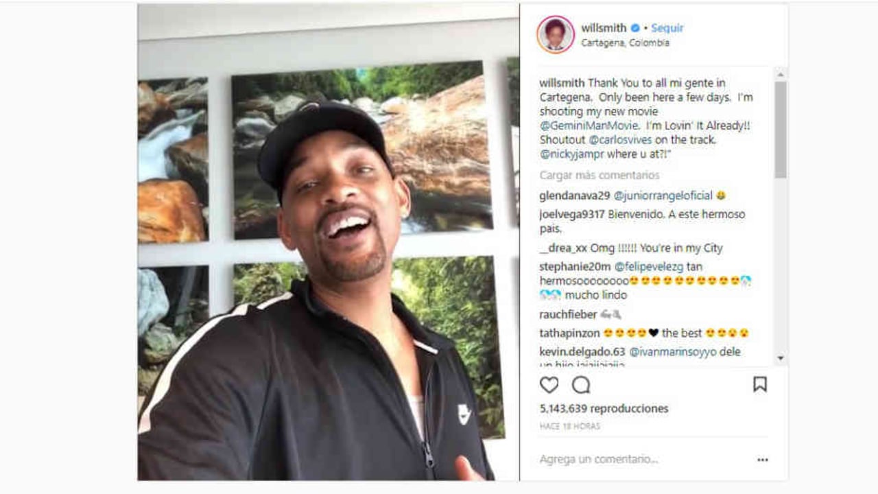 Will Smith no ha parado de revolucionar las redes sociales desde su llegada a Cartagena el pasado sábado. El actor de Hollywood llegó a Colombia para grabar su última producción ‘Gemini man‘ en compañía del reconocido director de cine Ang Lee, quienes planean quedarse en el país hasta el próximo 6 de mayo.