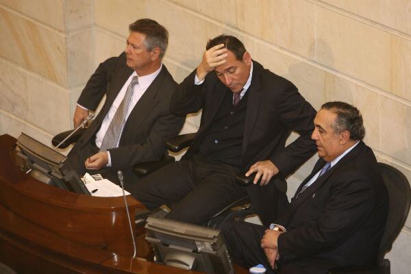 Hernán Andrade (der.), senador del Partido Conservador, fue uno de los que expuso mayores reparos al marco para la paz. Aunque no se opuso, llevó al parlamento algunas de las tesis de los críticos; el expresidente Álvaro Uribe y José Miguel Vivanco (Human Rights Watch).
