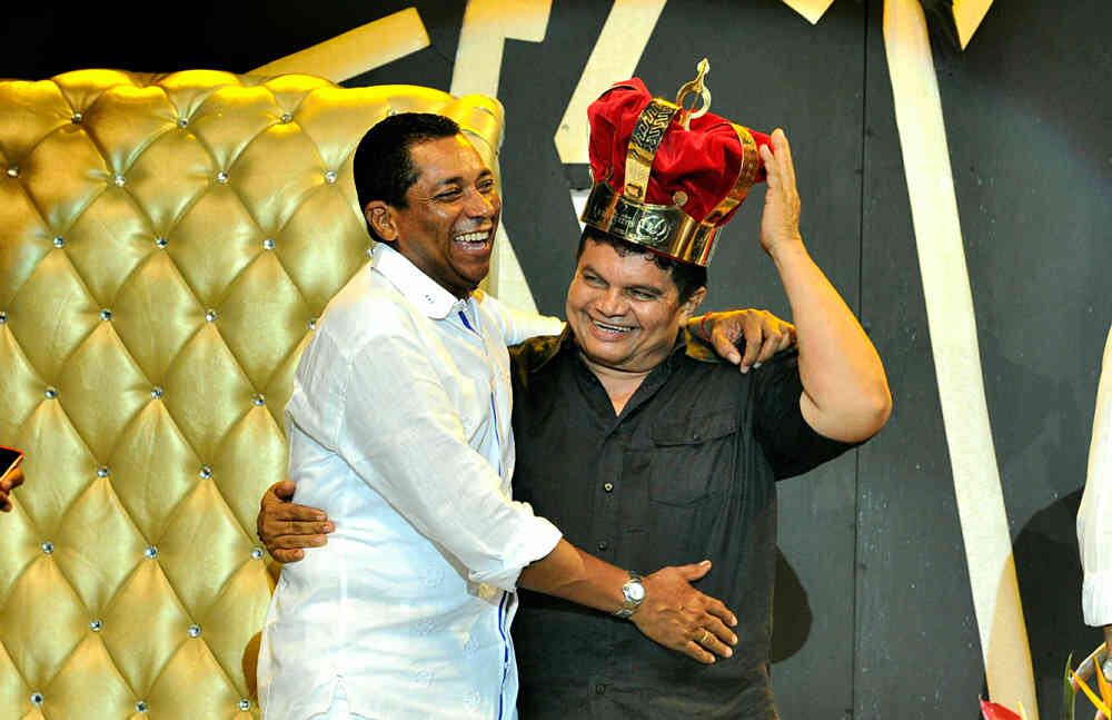 El Rey de reyes 2007, Hugo Carlos Granados (izq) celebra con el nuevo Rey de reyes 2017, Álvaro López Carrillo, el lunes 1 de mayo de 2017, en el parque de la Leyenda Vallenata, en Valledupar. Foto: Carlos Julio Martínez/Enviado Especial de Semana