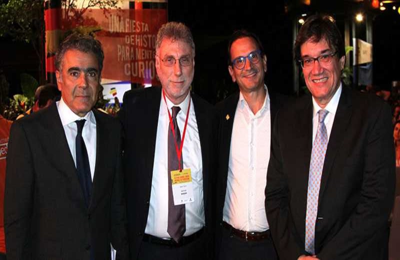 Federico Gutiérrez, alcalde de Medellín acompañado del director de la FNPI, Jaime Abello Banfi.