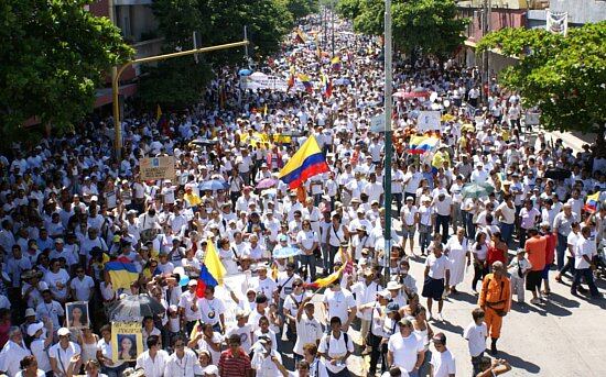 Desafiando una temperatura que rondaba los 35 grados y un sol pleno, miles de barranquilleros salieron a marchar contra el secuestro Barranquilla (Atlántico)