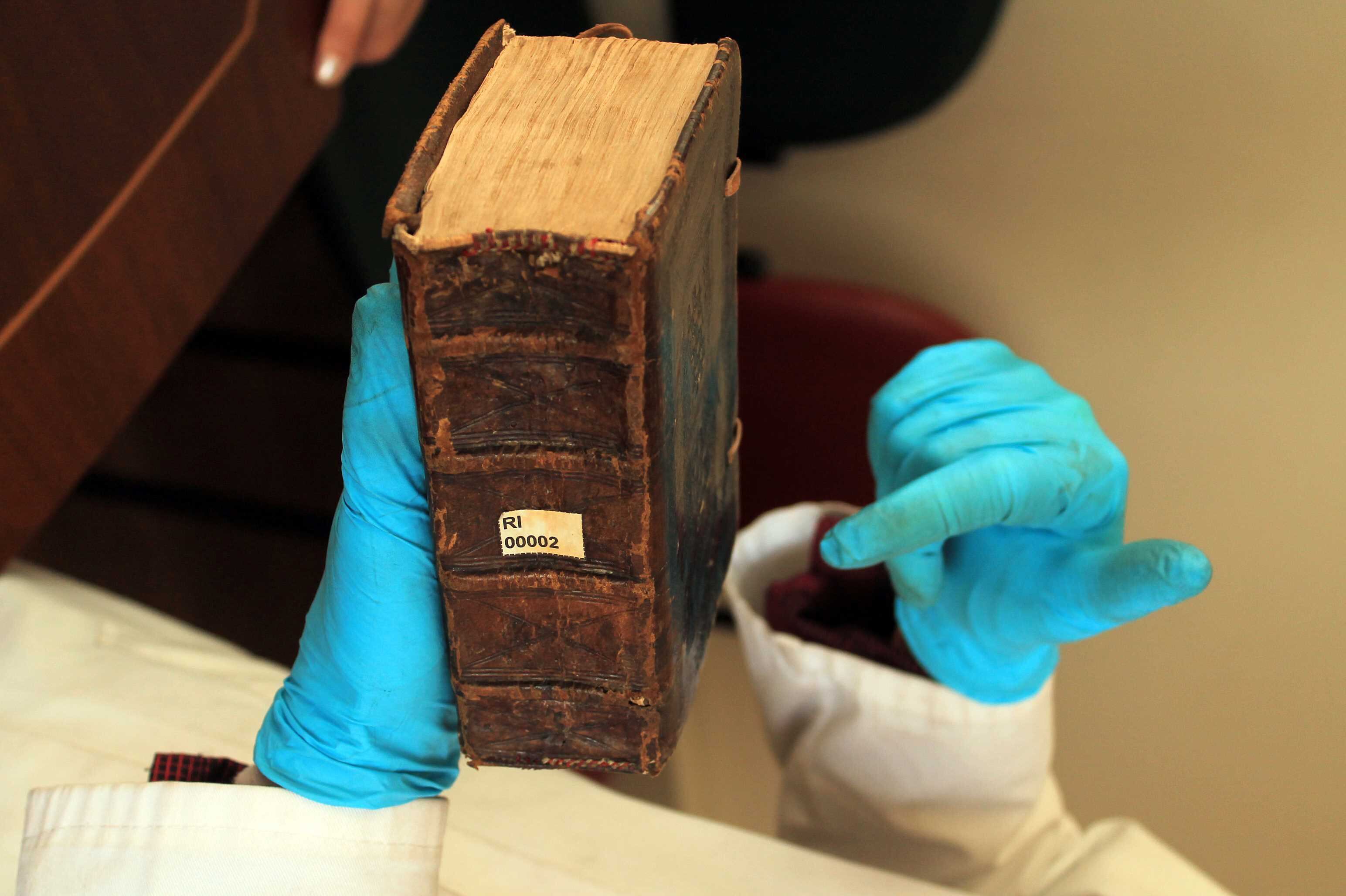 ‘Arte y Vocabulario de la lengua Achagua’ de Juan Rivero ( Edición de 1762). El achagua es una lengua indígena del pueblo achagua, de los que quedan aún pequeñas comunidades asentadas en La Hermosa (Casanare) y Puerto López (Meta). Este libro fue el primer diccionario achagua – español. Se sabe que posiblemente perteneció al vallecaucano José María Girón, estuvo por varios años fuera de la biblioteca nacional sin conocerse de su paradero y luego volvió a aparecer. Foto: Álvaro Tavera.