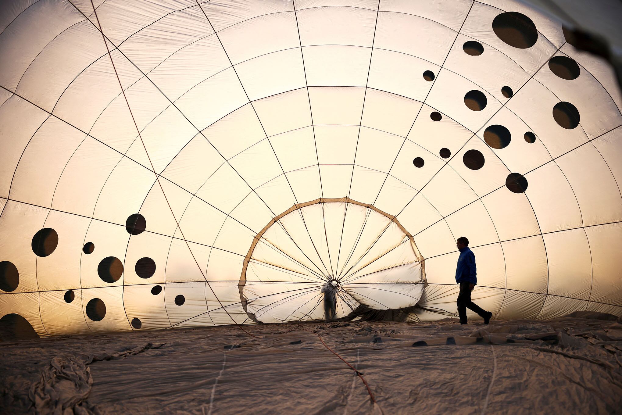 Foto: REUTERSUn miembro de la tripulación inspecciona un globo de aire caliente parcialmente inflado en la Bristol International Balloon Fiesta en Bristol, Gran Bretaña, el 4 de agosto de 2021. Foto: Reuters / Henry Nicholls.