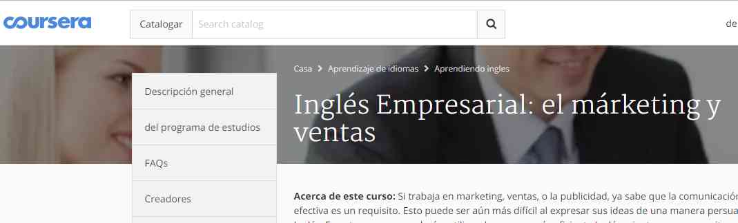 6. Inglés empresarial - marketing y ventas: con este curso, aprenderá a utilizar de manera más eficiente el idioma mientras y podrá desarrollar sus habilidades junto con personajes auténticos que trabajan en la comercialización y también trabajan duro para mejorar sus habilidades de comunicación. Además aprenderán nuevo vocabulario relacionado con la investigación de mercado, la marca, el marketing directo, los gastos de publicidad, etc.