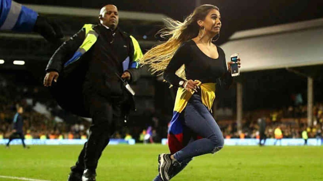 Pero sería una mujer la que más llamaría la atención de los jugadores y del mundo futbolístico en general. Se trata de Laura Quintero, una joven actriz que saltó al campo con una bandera de Colombia amarrada a su cintura en busca de estar cerca a James Rodríguez.