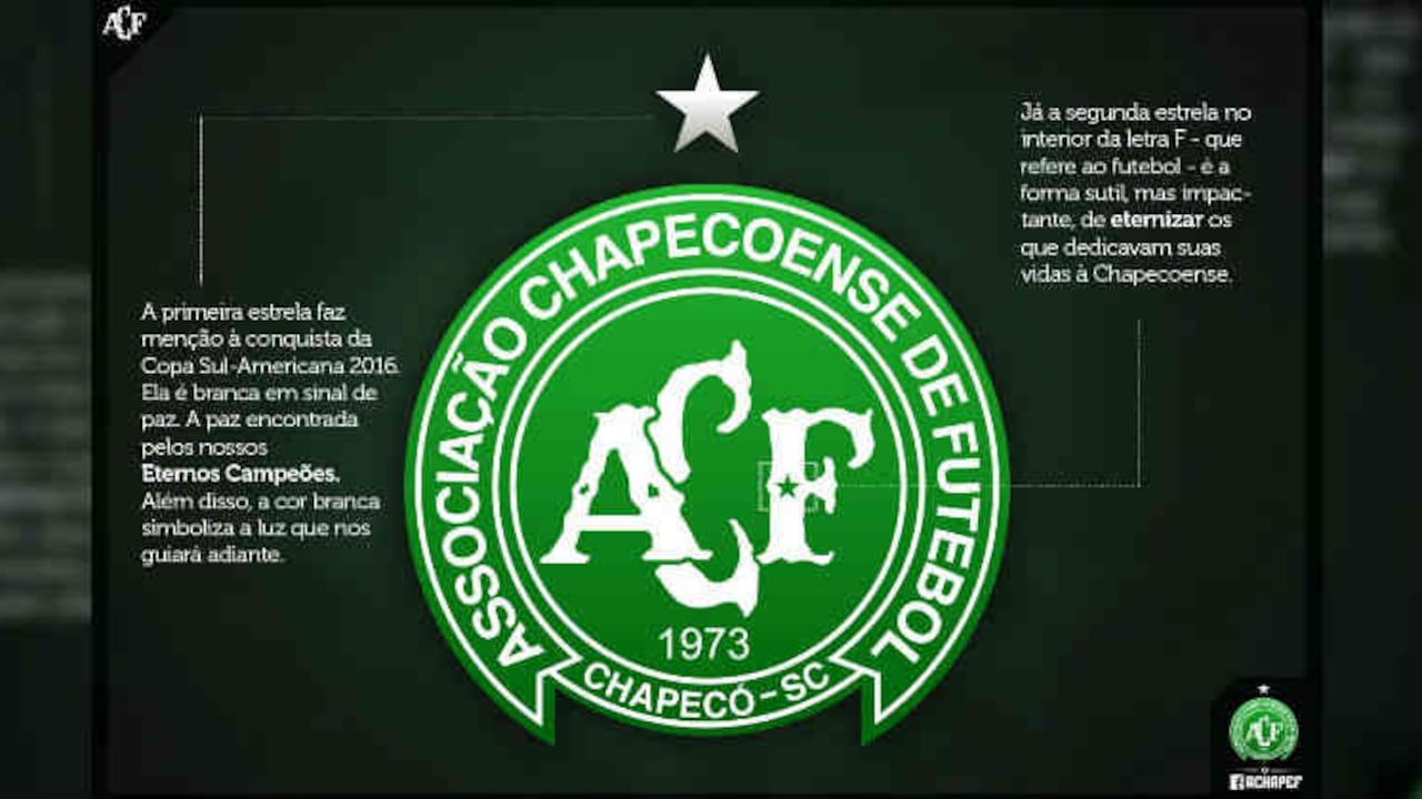 El Chapecoense modificó su escudo con la inclusión de dos estrellas para recordar a las víctimas del avión accidentado en Colombia, que provocó el fallecimiento de casi toda su plantilla, y conmemorar el título de la Copa Sudamericana, anunció este jueves la entidad deportiva.