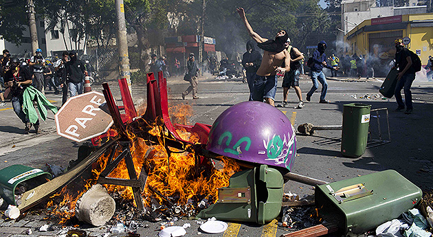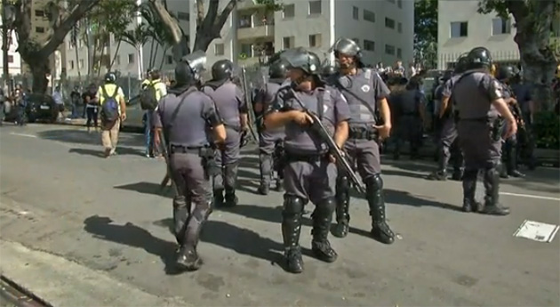 La policía lanzó gases lacrimógenos, balas de goma y bombas de estruendo para dispersar manifestantes antiCopa en Sao Paulo, donde se inaugura este jueves el Mundial de fútbol, constató un periodista de la AFP.
