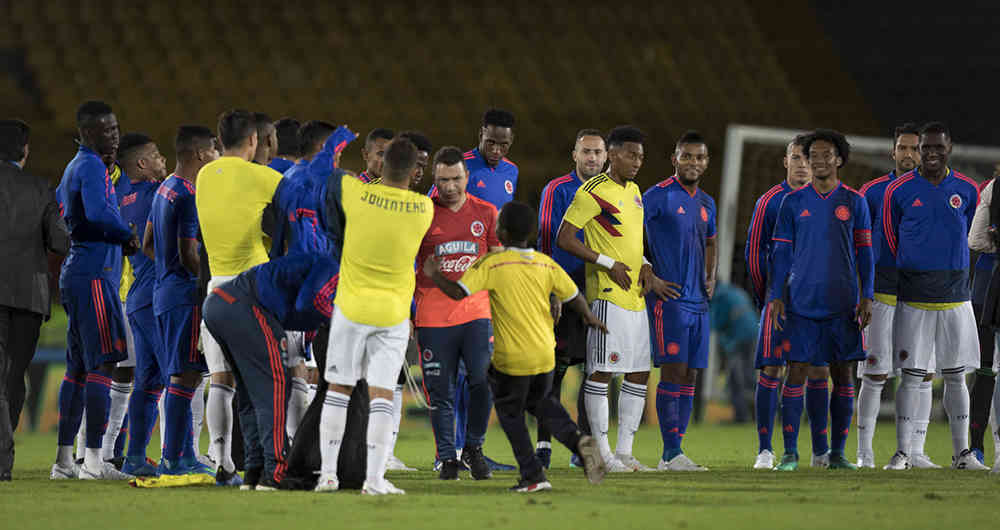 Cuando terminó el partido y mientras Catherine Ibargüen se preparaba para entregar la bandera de Colombia al capitán Radamel Falcao García, un intrépido niño saltó a la cancha aprovechando la confusión.