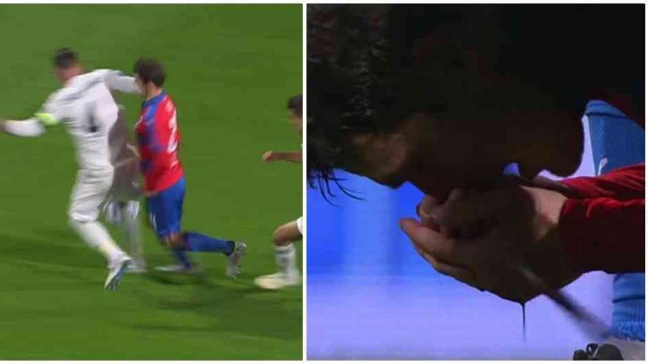 La jugada se produjo en el minuto 14 del encuentro y la víctima fue Milan Havel, que sangró copiosamente por la nariz producto del golpe y se tuvo que retirar del encuentro.