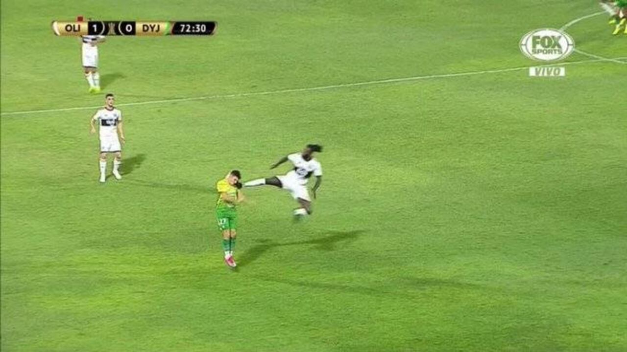 En el minuto 71 del encuentro Adebayor lanzó una tremenda patada que conectó la cara de un rival. A pesar de que el delantero estelar del Decano pidió disculpas, el árbitro peruano Víctor Hugo Carrillo lo expulsó por esta descalificadora falta.