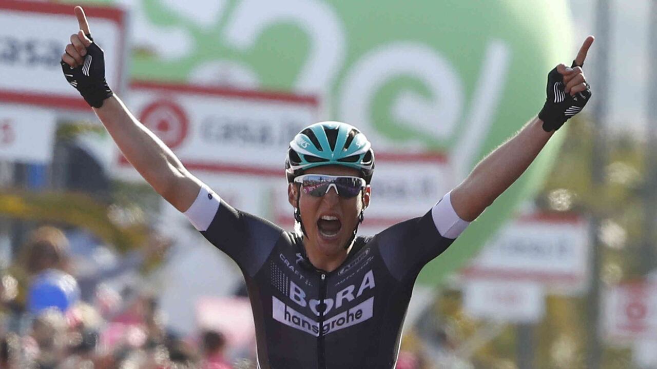 10:47 a.m.: Victoria para Lukas Pöstlberger, el corredor del Bora atacó faltando 1200 metros y aprovechó la confusión de los sprinters y se queda con la primera etapa del Giro . Además logra la camiseta rosa.