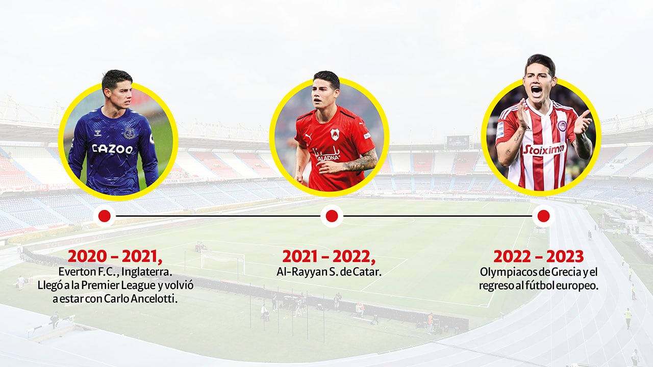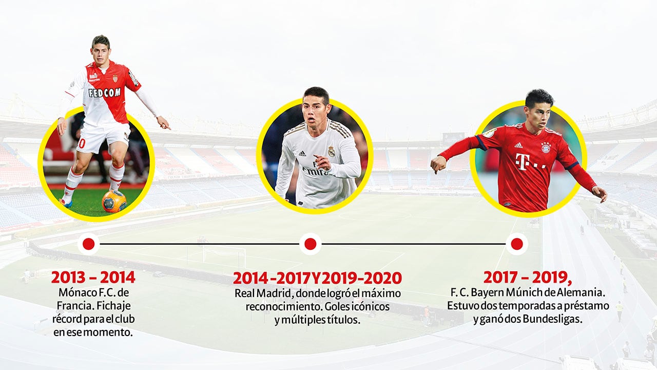 James Rodríguez completó 18 años de carrera en el fútbol profesional y se ha dado el lujo de haber pasado por los principales equipos del mundo. Fue goleador del Mundial de Brasil 2014 y ese mérito le abrió el camino para llegar al Real Madrid, club en el que brilló hasta la llegada de Zinedine Zidane.