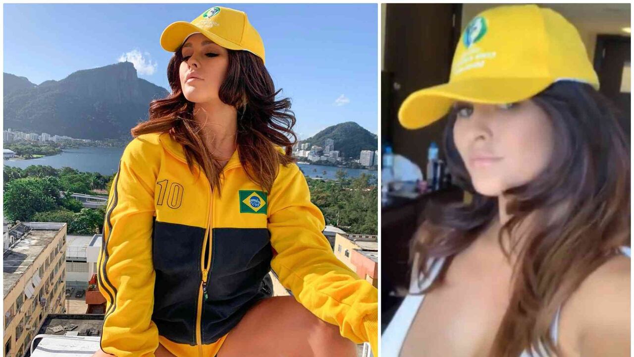 En la publicación, que incluye tres fotos y un video, aparece la joven con su pelo de color oscuro y usando una chaqueta con los colores de Brasil acompañada de su novio, quien usa un bigote falso.