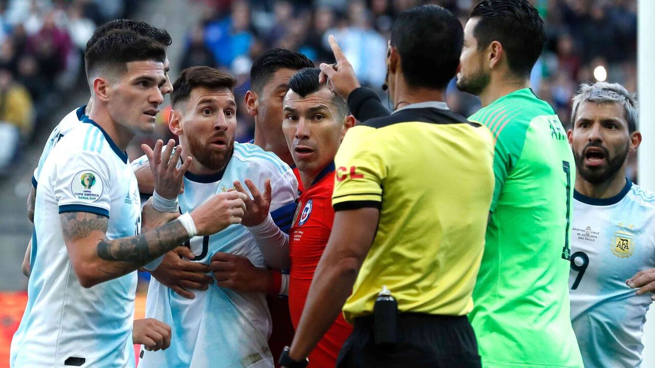La figura de la albiceleste obtuvo la tarjeta roja después de ser víctima de una agresión de Gary Medel. El árbitro no vio quién había iniciado el altercado y sancionó a ambos jugadores.