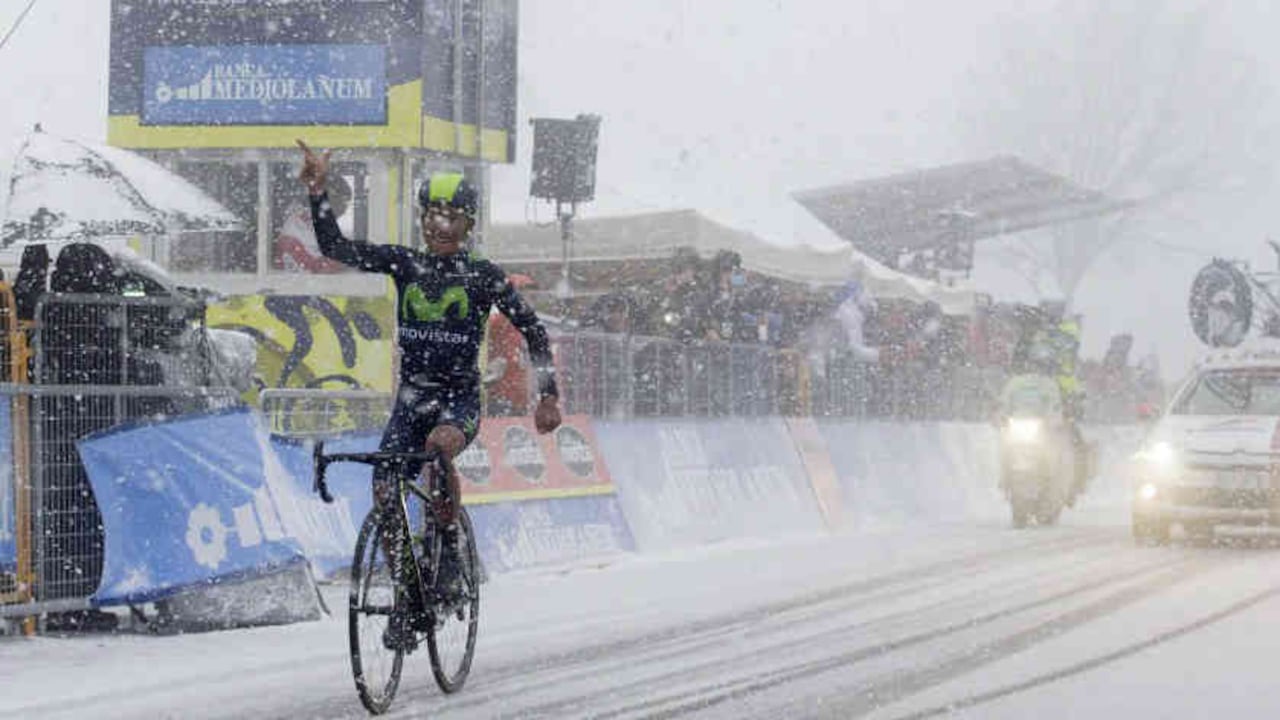 En una etapa en la que la nieve fue protagonista, Nairo Quintana superó las complicadas condiciones climáticas y fue primero en la llegada de la segunda etapa de la Vuelta a Asturias. El colombiano se impuso en el recorrido de 178 kilómetros entre las localidades de Soto de Rivera y el Alto del Acebo.