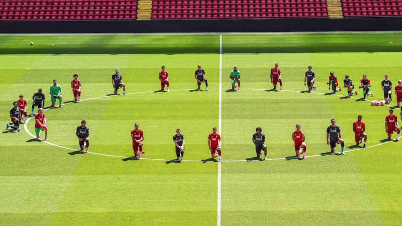 El campeón de Europa de fútbol y muy probable ganador de la próxima Premier League, Liverpool FC, mostró este lunes su solidaridad con los manifestantes que reclaman justicia en el caso de la muerte de George Floyd en Estados Unidos, al colocar su plantilla una rodilla en tierra en el círculo central de Anfield. "La unión hace la fuerza. #BlackLivesMatter ("La vida de los negros cuenta", el eslogan del movimiento antirracista estadounidense)", tuiteó el defensa central de los Reds Dejan Lovren junto a una foto con el equipo haciendo ese gesto en el centro del campo.