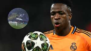 Aficionados de uno de los fondos del Etihad Stadium del Manchester City desplegaron antes del inicio del partido un tifo en el que aparecía el centrocampista ‘Citizen’ Rodri besando el Balón de Oro, con un mensaje alusivo a Vinicius.