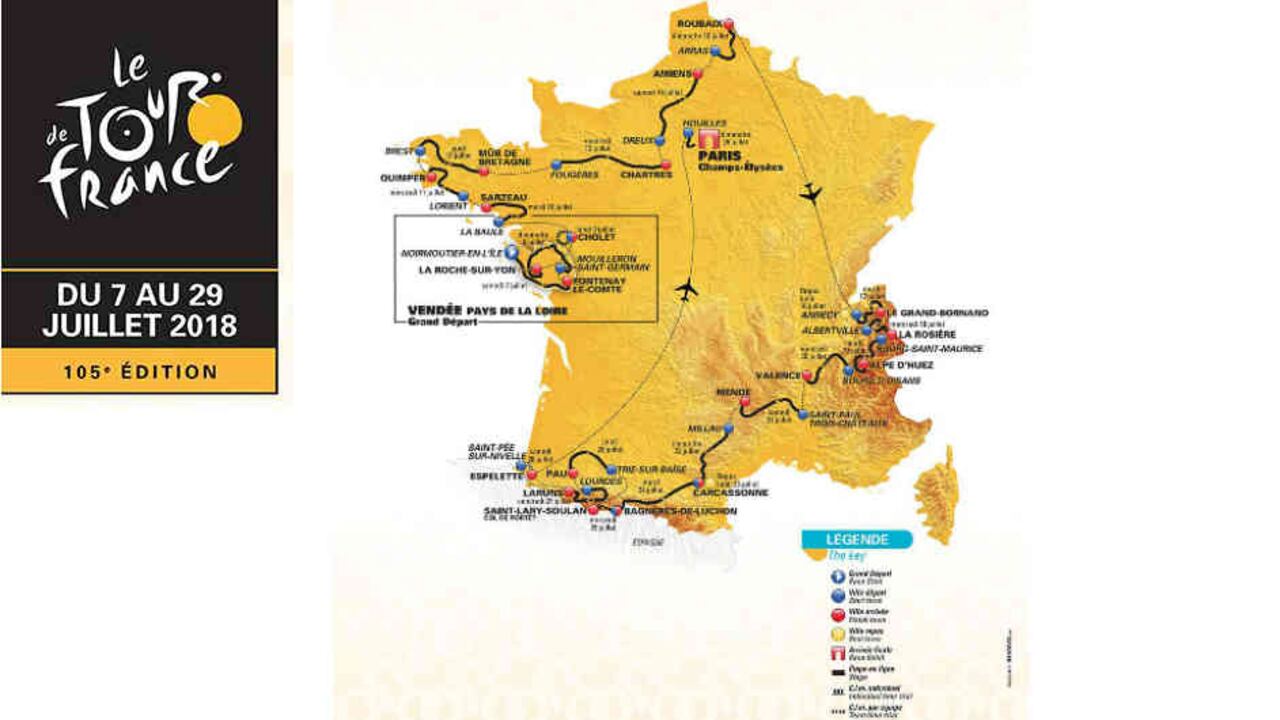 La ronda gala retrasará su inicio con respecto a otros años por el Mundial de Fútbol Rusia 2018. Partirá el 7 de julio en Noirmontier, que se convertirá en la cuarta isla que acoge la salida de la carrera, tras Irlanda, el Reino Unido y Córcega.