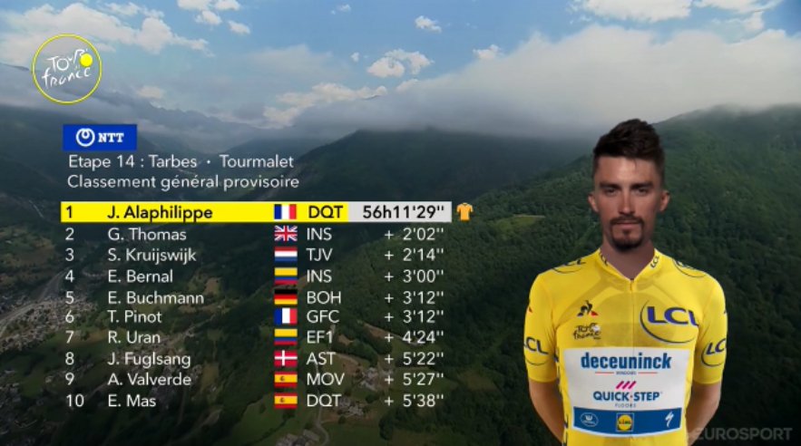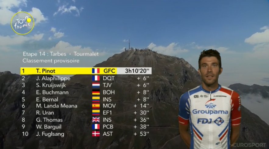 El ganador de la etapa fue Thibaut Pinot que atacó en los últimos 300 metros y se llevó una imponente victoria. Julian Alaphilippe mantuvo el liderato.