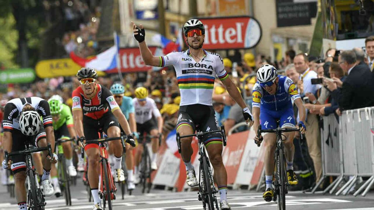 Sprint incroyable de @petosagan, surpuissant pour s'imposer devant @blingmatthews / What a sprint from Sagan, so much power! 💪💪 #TDF2017 pic.twitter.com/FJGFOYWHnL