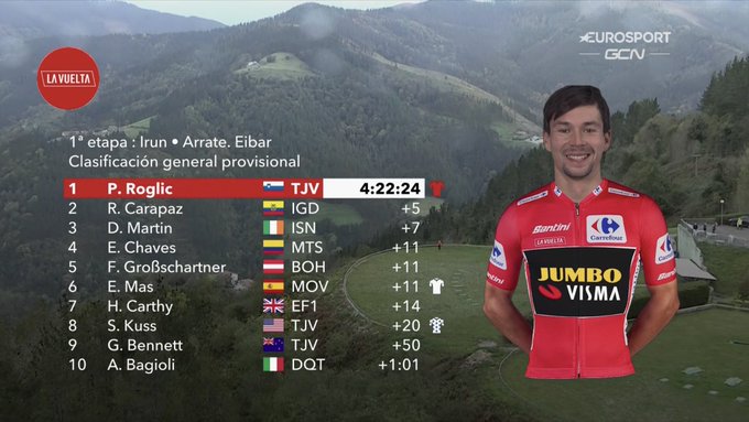 Roglic springt weg in de slotkilometer en wint meteen de eerste rit in de Vuelta #LaVuelta20 pic.twitter.com/ddEgVW1k8c