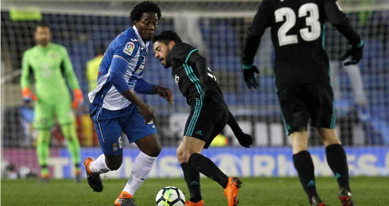 Con una notable actuación del colombiano Carlos Sánchez, el Espanyol de Barcelona cortó una racha de cinco victorias consecutivas del Real Madrid. El equipo catalán se impuso 1 a 0 con un gol en tiempo de descuento de Gerard Moreno. Pasaron 11 años para que el equipo Periquito venciera al club merengue.