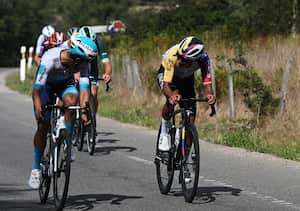 Un pelotón que se redujo drásticamente en las pendientes del Alto de Prado (8,9% de pendiente media con rampas con cerca del 20%) bajo el impulso del equipo Bahrain-Victorious, y que llegó a meta casi seis minutos después de los dos hombres de cabeza.