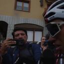 Mientras el colombiano estaba respondiendo preguntas a la prensa española, el dueño de la maglia rosa le tocó la pierna y con una sonrisa le agarró la mano en señal de agradecimiento por lo que dijo el día inmediatamente anterior.