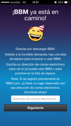 Si nunca ha tenido cuenta en BlackBerry Messenger, no importa, podrá abrir una nueva desde su celular iOS o Android, ingresando un correo electrónico.